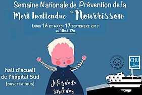 Dans le cadre de la semaine nationale de prévention de la MIN (mort inattendue du nourrisson), lundi 16 et mardi 17 septembre, de 10h à 17h dans le hall d'accueil de l'hôpital Sud, jeunes parents, professionnels de santé et autres publics pourront rencontrer des professionnels, et participer à divers ateliers de sensibilisation (motricité libre et prévention plagiocéphalie, portage bébé, allaitement maternel, matériel de puériculture, qualité de l'air...) autour des bonnes pratiques en matière de prévention.