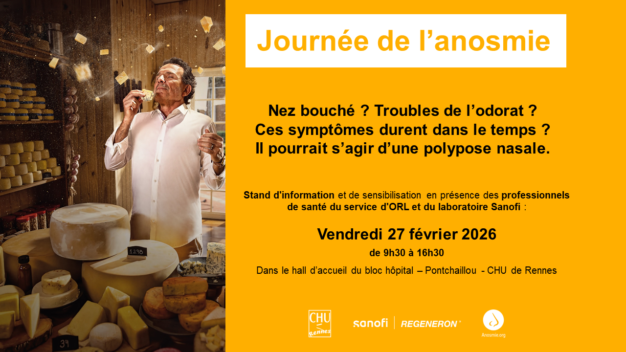 A cette occasion, un stand d'information et de sensibilisation en présence des professionnels de santé du service d'ORL et du laboratoire Sanofi aura lieu au CHU de Rennes :